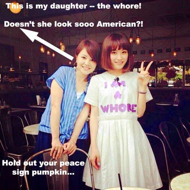 My favorite is my “I’m Am a Whore” dress seen in the picture above. You’ll be the envy of all the girls at Tian An Men Square wearing this snappy little number set to a cute summer dress boasting purple font on white cotton — a legit hip-hop message from the West, yo! Here are some of the other garments that sold particularly well: