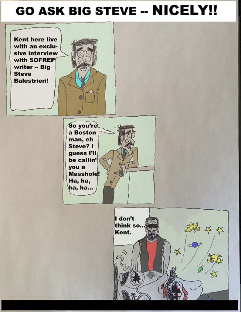 Big Steve Balestrieri and Alex Hollings have a good deal in common, not the least of which is you wouldn’t want any part of either one of them in a beef. But like most of my brothers, they are both genuinely nice guys with sterling personalities and manners. I suppose that this is why I like to portray them as loose-leash pipe-hitters, hooligans, brigands who would unload ARs at unwanted rugrats climbing in their apple trees or draw a bead on a nosey neighbor woman trespassing their yard to retrieve a loose pet.