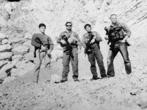 It’s three months straight, and it’s the most stressful thing I’ve ever done. You go out to this field in open terrain and you have instructors they call walkers with orange hunting hats, all with radios, and they go, “Alright, gents. You’ve got four hours, your target is in that direction, here’s your left boundary, your right boundary. Time starts now. Go.” Then you’ve got to get up to the position, identify the target, right? With two instructors sitting on this table or truck with high-powered binoculars, laser rangefinders, and a radio. And if they see anything they’re going to bust you. And if you’re busted, you failed. You’re off the field. And you can only fail a few. That actually happened to Marcus Luttrell. I failed him out for stalking. He was terrible. I mean he would clip ground cover, put it on his hat, and then stand up and go on the stalk. Through the binos, you see a dude — like a Sasquatch, a badly dressed Sasquatch out there. And I thought, who is that? Is that Luttrell again?