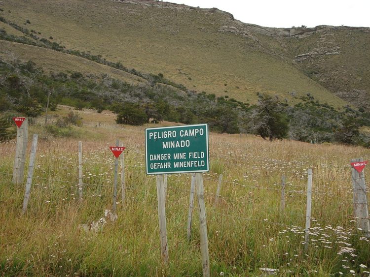 Active minefields along the highway in southern Chile. Jason Hollinger, CC BY 2.0, via Wikimedia Commons