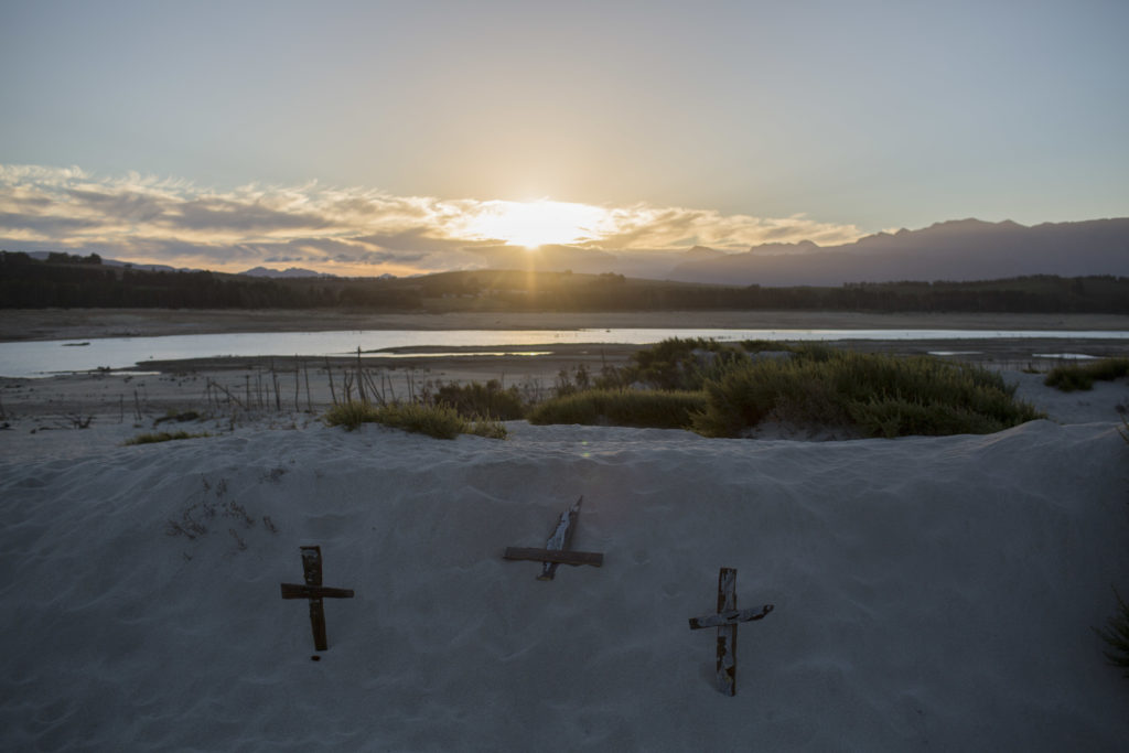 Cape Town’s main water supply from the Theewaterskloof dam outside Grabouw, Cape Town, Thursday, Feb. 1, 2018. South Africa’s drought-hit city of Cape Town plans to introduce new water restrictions on Thursday in an attempt to avoid what it calls “Day Zero,” the day in mid-April when it might have to turn off most taps. | AP Photo/Bram Janssen