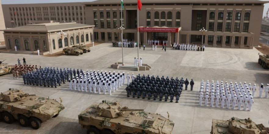 Chinese troops assemble in formation at the Chinese base in Djibouti in the Horn of Africa.