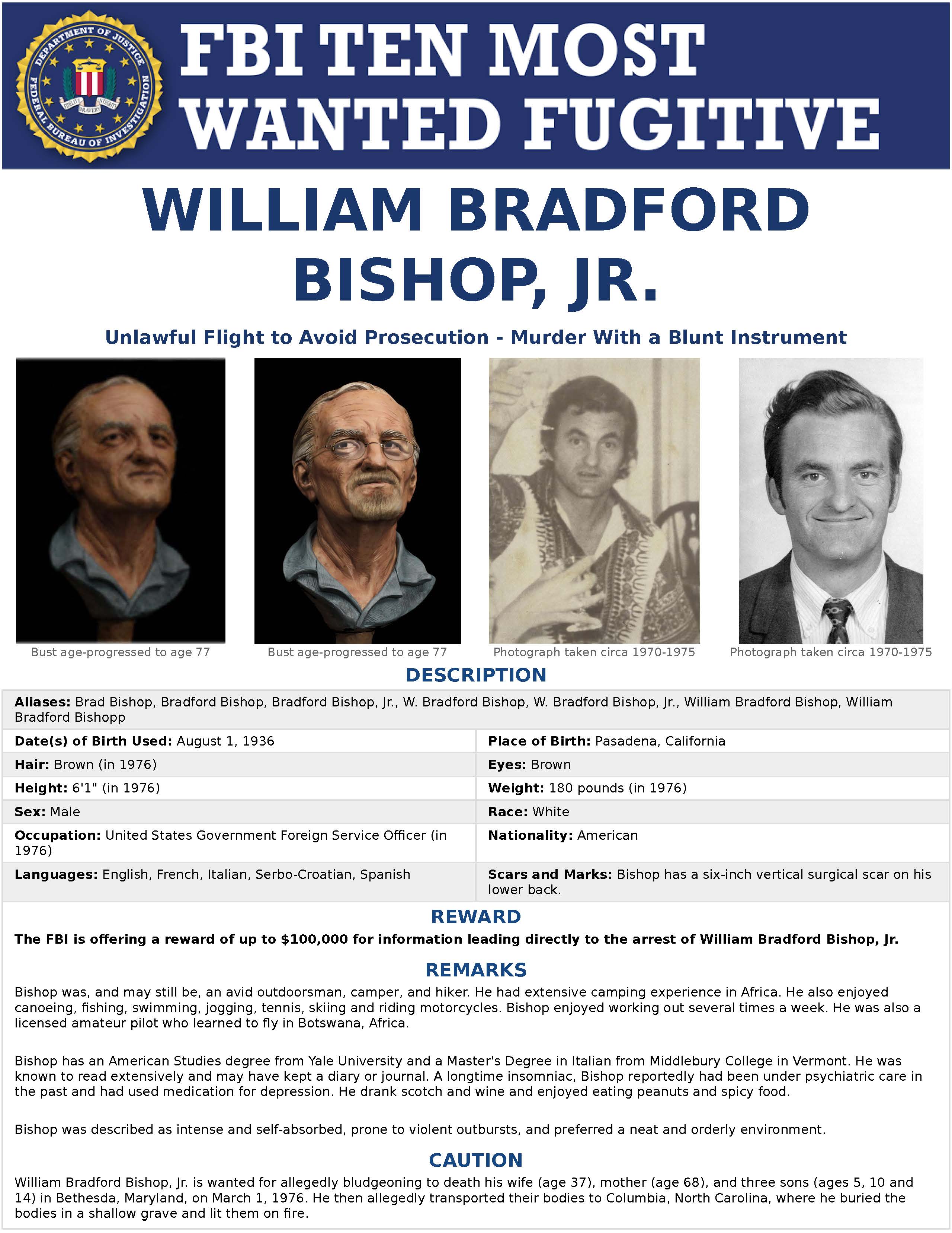 One case from the FBI’s most wanted list is especially problematic for several reasons. First, this fugitive is wanted for the brutal murders of his entire family, but these crimes were committed roughly 40 years ago — Bishop could be anywhere. He speaks a variety of languages and has experience traveling and living abroad in Europe and Africa, not to mention having lived on both the East and West Coasts of the United States. He is intelligent with degrees from both UCLA and Yale as well as having studied at other universities.