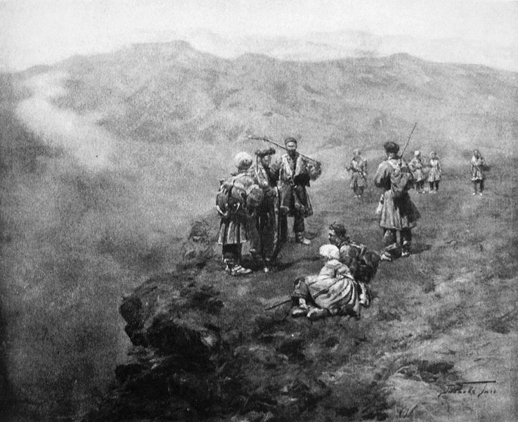 Khevsurs at the post. (Gigo Gabashvili, Public domain, via Wikimedia Commons)