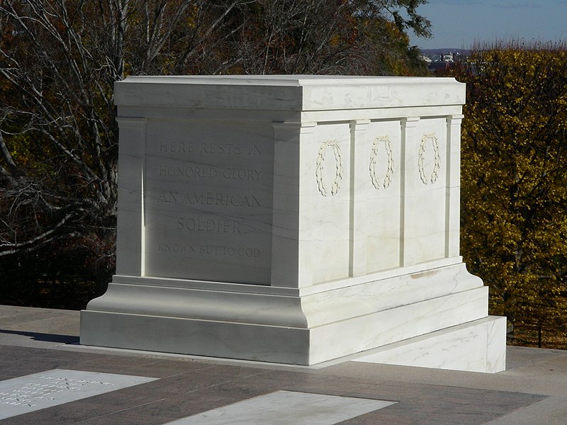 On November 11, 1921, an unknown soldier was brought back from France after World War I. During that time, there were not enough technological advances yet, like dental records or DNA testing, to help the government identify this soldier and the other thousand unidentified ones. And so, the US government approved the construction of a memorial at Arlington National Cemetery as a final resting place for the unidentified soldiers that were brought back in the US. The unknown soldier from France was the first to be buried below that three-level marble tomb. At first, it was a stone slab that covered the rectangular opening. However, it was changed to Yule marble in 1931. There had been four bodies in the tomb, each from World War I, World War II, Korean War, and Vietnamese War. However, the latter was identified in 1998 as Air Force 1st Lt. Michael Joseph Blassie. His remains were sent home to his family in St. Louis, Missouri, where he was reinterred at Jefferson Barracks National Cemetery. At the west panel of the tomb was an inscription: