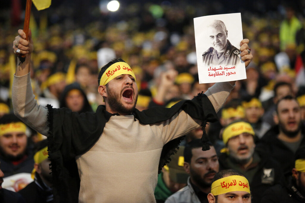 Hezbollah supporters commemorating the former IRGC Commander, Qassem Soleimani, who was killed in a US drone strike