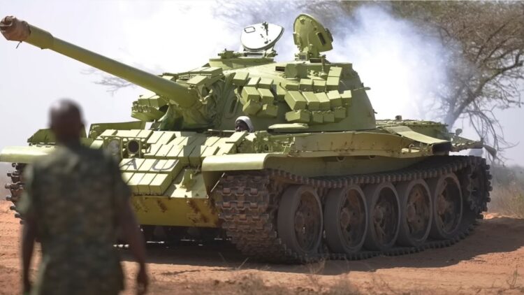 A Ugandan T55 tank. Screenshot from YouTube and Mark Felton Productions.