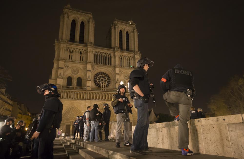 Armed police officers patrolling around Notre-Dame cathedral and the Saint-German neighborhood in Paris (Ian Langsdon/EPA)