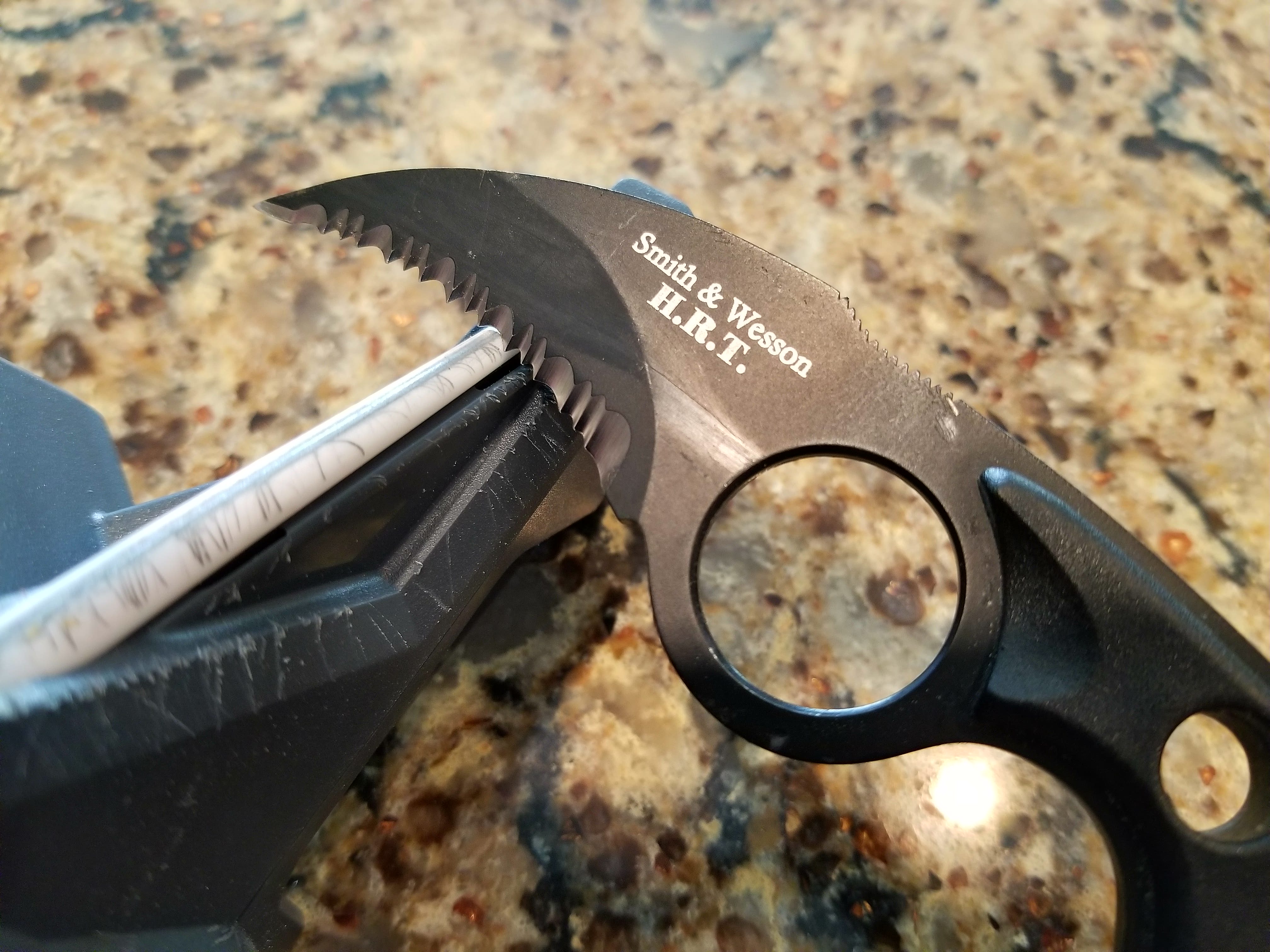 The Japanese paring knife was already fairly sharp, but it too was given an even finer edge. Even my Smith and Wesson HRT serrated blade was honed to perfection using the ceramic rod. Regardless of steel type, I was able to bring each and every knife blade back to brand new, much to my delight.