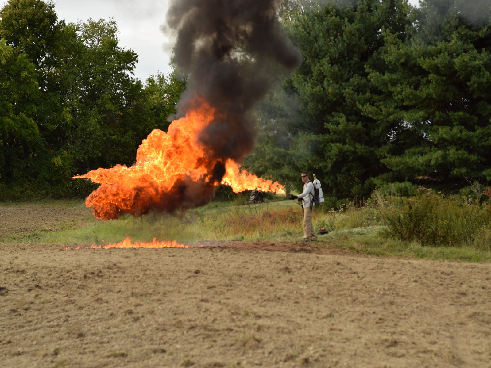 Pyrotechnic displays – Nothing like igniting a pile of black cat firecrackers with a 50′ stream of a napalm gas mixture!
