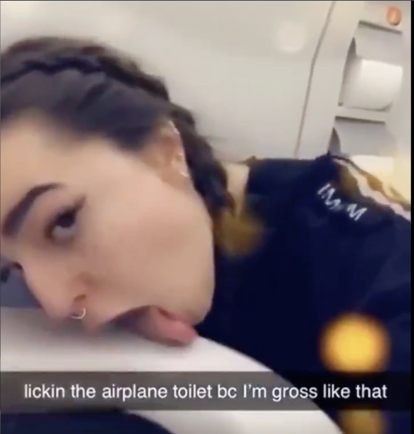 I’m guessing her next stunt will be to travel to the Auschwitz/Birkenau memorials in Oświeńcim, Poland and play Deadpool’s “Let the Bodies Hit the Floor” really really loudly. I find it ironic (to say the least) that the blond person held her hair back as she licked the seat so it wouldn’t touch the toilet — what??