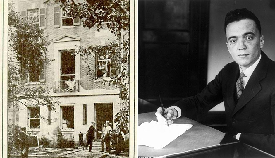 Valdinoci also blew himself up in the process when the bomb exploded prematurely. Across the street, a young man named Franklin Roosevelt, along with his wife Eleanor were also shaken by the blast. The Roosevelts had just returned home from a walk and had just passed by the Palmer home.