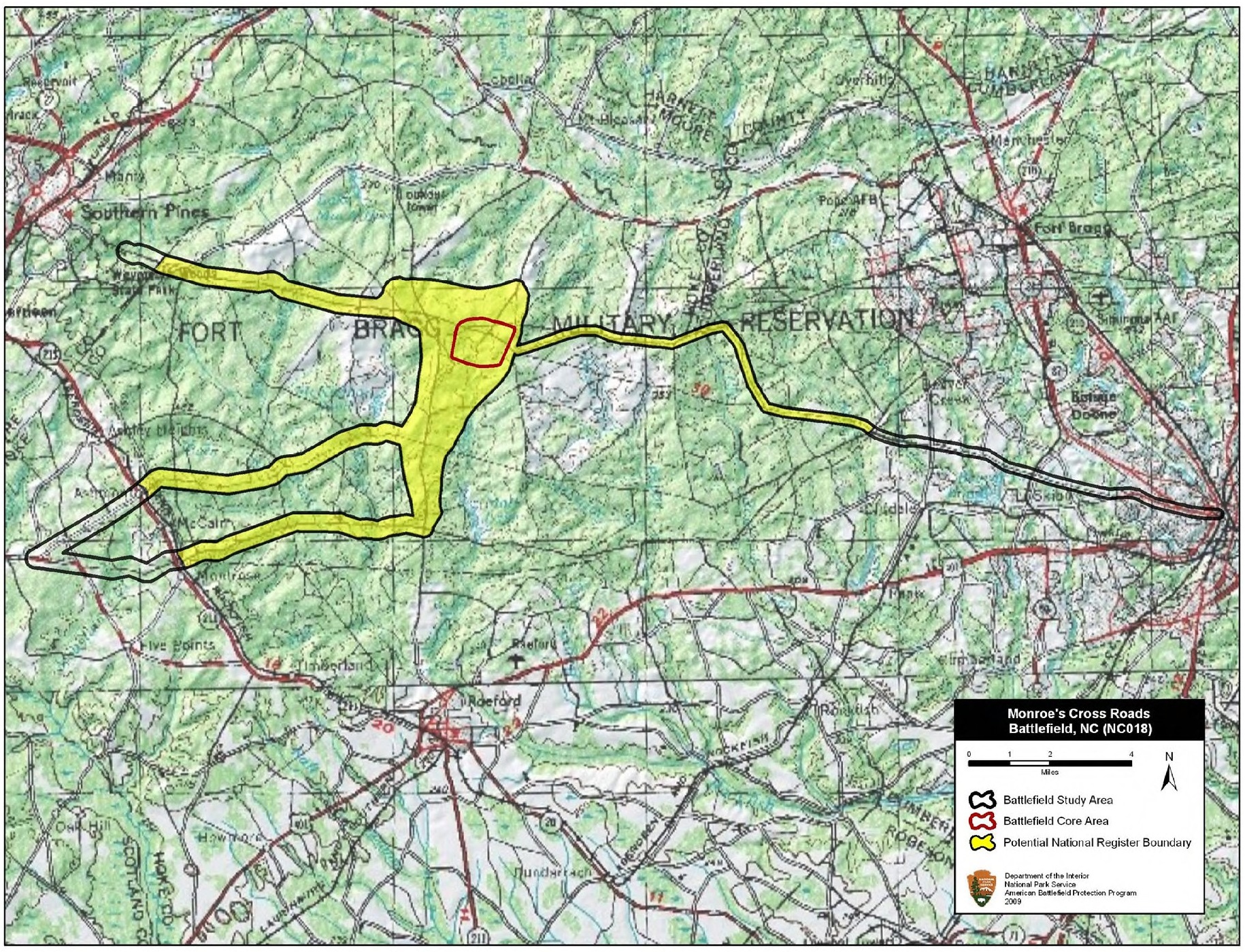 It took place in what is now northeastern Fort Bragg, NC. Confederate cavalry under the command of Major General Wade Hampton and MG Joseph Wheeler surprised the Union cavalry of Major Gen. Hugh Judson Kilpatrick early on a rainy, misty morning in March of 1865 and nearly captured the general himself before they were forced back.
