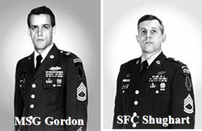 Super 64 Shot Down, Gordon and Shughart Defend the Crash Site: It was during this time at 1640 hrs when Black Hawk Super 64 piloted by CW3 Mike Durant was hit by an RPG and crashed. Durant was the only survivor. Operating overhead in Black Hawk Super 62 were Delta snipers SFC Gary Gordon and SFC Randy Shughart who twice requested to be put down on the Super 64 crash site and were refused. On the third request, they put down and secured Durant and moved him to the edge of a building.