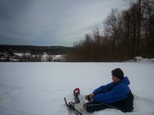 Again, forget about the pace, it isn’t going to be the same as a timed rucksack march in Selection. Just focus on technique and working as fast and as hard as you can. This particular hill is one that is familiar as my wife and I have snowshoed up here for several years. The climb is steep but once you get to the top, the hill is cleared and the view is spectacular of the valley around us and the lake and makes it all worthwhile.