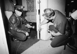 Other witnesses testified that there were bullet holes found in the door frames of the Ambassador’s kitchen, and photos showed investigators examining the holes immediately after the shooting. Taking into account the three bullets that hit Kennedy and the bullets that hit the five wounded victims, investigators had accounted for all eight of Sirhan’s shots. However, any subsequent rounds found in the doors would indicate a second gun. Wolfer later said the holes and the metal inside were not bullets, and the door frames were destroyed after the trial.