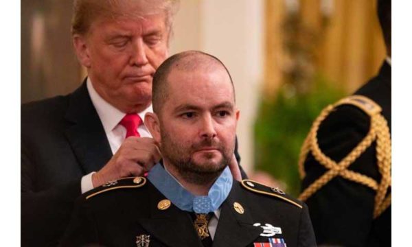 He’s a warrior,” Trump said. “For more than six hours, Ron bravely faced down the enemy,” Trump added during the ceremony. “Not a single American died in that brutal battle thanks in great measure to Ron’s heroic actions.”
