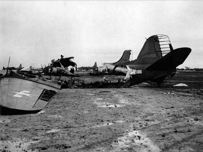 Chaos reigned supreme on the airfield. The Japanese commandos ignited a fuel depot containing 70,000 gallons of aviation fuel and the night sky was illuminated with spectacular geysers of flames that cast a surreal glow on the deadly events that would ring the airfield all night.