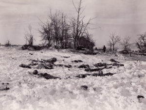 Unfortunately, the bodies at Malmedy weren’t recovered until January 14, 1945, when the Americans finally took back the Baugnez crossroads where the massacre took place. An inspection of the dead showed many died from a pistol to wound to the head with powder burns showing execution by the SS.