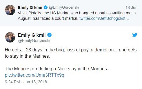 And unaware of how precedence works in similar cases, Gorcenski tweeted that the Marine Corps was allowing a Nazi to remain in the Corps.
