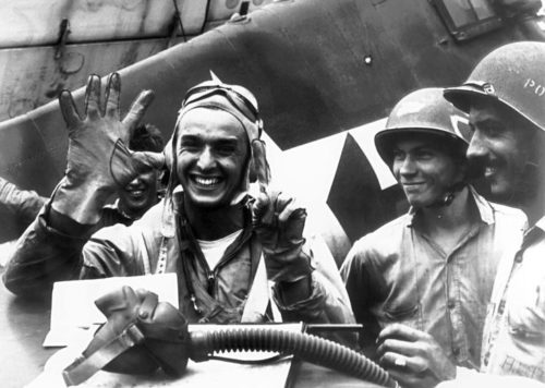 Back on board the USS Lexington, as the pilots were being debriefed before their next mission, one pilot remarked, “Hell, this is like an old-time turkey shoot!” One American pilot, Lt. Alexander Vraciu downed six Japanese dive bombers in a single mission, he ended up with a career 19 enemy aircraft shot down and another 21 destroyed on the ground.
