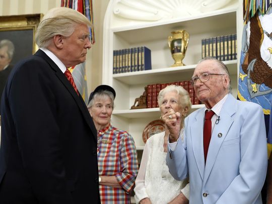 Pearl Harbor survivor Donald Stratton, meeting with President Trump in the White House earlier this summer.