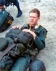 McCarty’s radioman was wounded in the leg at the very outset of the battle. He frantically radioed Sgt. Stamper, who was located with a platoon at the base of the mountain, informing him of the situation. MAJ. Leary, the detachment commander, was monitoring the exercise from a Forward Air Control (FAC) aircraft. He could see the firefight commence and was monitoring the radio traffic between the troops on the ground.