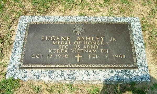 Ashley’s family was presented with his posthumous Medal of Honor by VP Spiro Agnew in November of 1969. He is buried in Rockfish Memorial Park, Fayetteville, NC. In 2001, the Eugene Ashley Jr. High School, located south of Wilmington near Carolina Beach was dedicated in his honor.