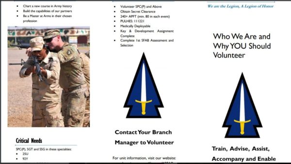 If it wasn’t bad enough that they absconded with the SFer moniker, the patch, the Green Beret, they couldn’t even come up with an original nickname. For many years now, the 5th Special Forces Group has been calling itself “The Legion”, which, unless you’ve been living under a freakin’ rock …or living at Ft. Benning apparently was lost on these folks. That’s right, these SFAB people are calling themselves “The Legion” it is on their brochures, their videos trying to get people to volunteer and I’m sure it is already on a sign somewhere at Benning. So, I don’t know about anyone else, but who can’t wait to see what the unit’s Beret flash is going to look like?
