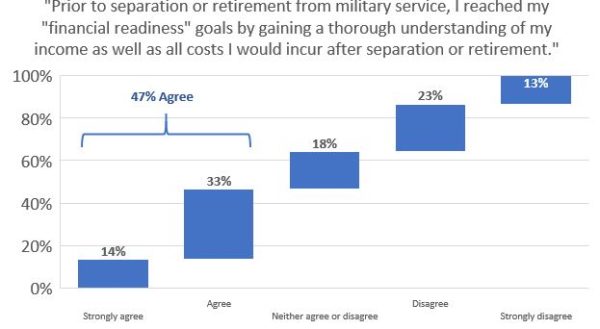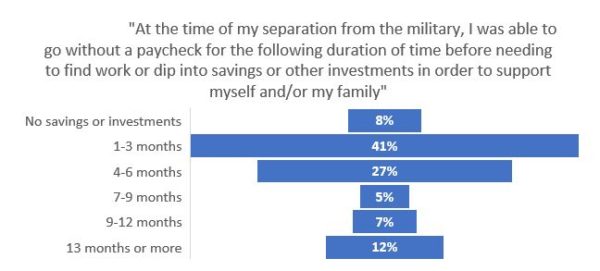 In the survey, the veterans as you can see in the charts below are not well prepared financially for separation transition.
