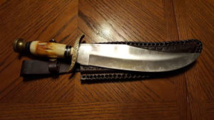 The handles come in a variety of styles, hardwood, bone, rubber, and polymer. All have their strong points. It just comes down again to personal choice. Blade type and length are the next criteria. I prefer the straight blade rather than a serrated one. It is better for chopping and those serrated blades are much tougher to sharpen. Blade length should be between 6-12 inches. I personally think a 6-inch blade may be a bit too short. A 9 to 10-inch knife is ideal. My Bowie is just under 11 and a half inches and at times is a bit too big for many applications.