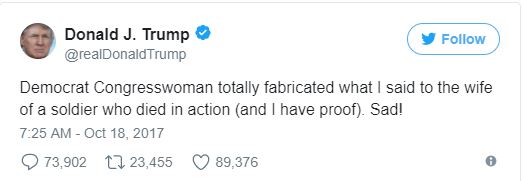 Did the President actually say these words? I don’t know, but given his lack of filter in the past, I tend to believe it. Was it a deliberate attempt to hurt the feelings of SGT Johnson’s widow? No, I don’t buy that a bit. But as we’ve seen in the past, President Trump’s lack of filter and speaking off the cuff can get him in trouble.