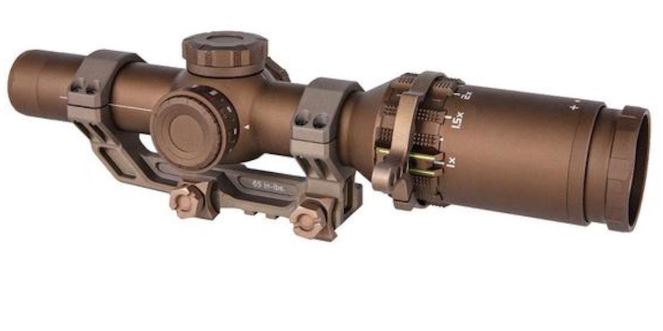 The Tango6T 1-6×24 riflescope, selected by DoD is a second focal plane, so the reticle will appear to stay the same size to the shooter no matter the magnification setting.