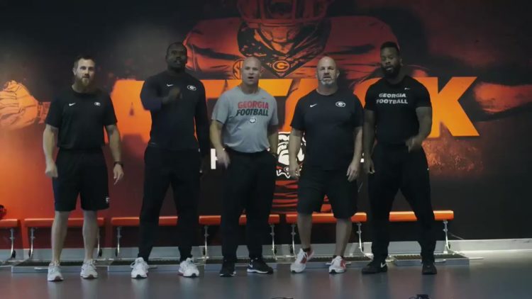 Since last year, we’ve been fascinated with the strength and conditioning coaches of the Georgia Bulldogs football team. Georgia strength coaches Scott Sinclair, Ed Ellis, Rodney Prince, Jamil Walker, and Ben Sowders not only encourage and motivate their players and students alike but take an active part as well.