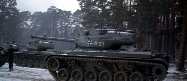 The German Tiger Tanks were actually M-47 Patton tanks and the American Shermans were portrayed by M-24 Chaffee light tanks. Filmed entirely in Spain, the terrain resembled the wooded, hilly Ardennes, not at all.