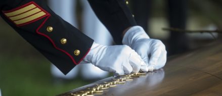 A Marine pounds his Marine Special Operator Insignia into the casket of fallen Marine Sgt. Joseph J. Murray during a funeral for Murray at Arlington National Cemetery, Arlington, Va., Aug. 15, 2017. Murray, 26, was one of the 15 Marines and one Navy sailor who perished when their KC130-T Hercules crashed in Mississippi, July 10, […]
