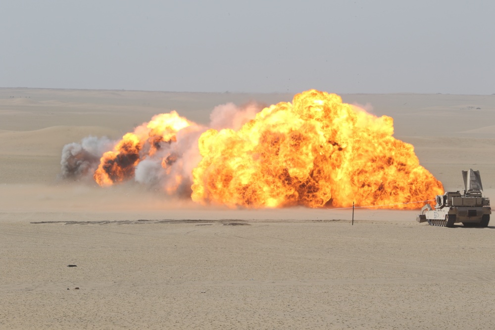 30th Armored Brigade Combat Team Soldier’s conduct training with Mine Clearing Line Charge in Kuwait on June 17, 2020. The Mine Clearing Line Charge is a line of explosives used to detonate mines in the ground.