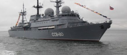 The service did not provide additional information about the ship or its origin but naval analysts contacted by USNI News surmised the ship is the Project 1826 Bal’zam class ship Pribaltika (SSV-80) operating out of Vladivostok on Russia’s Pacific Coast.