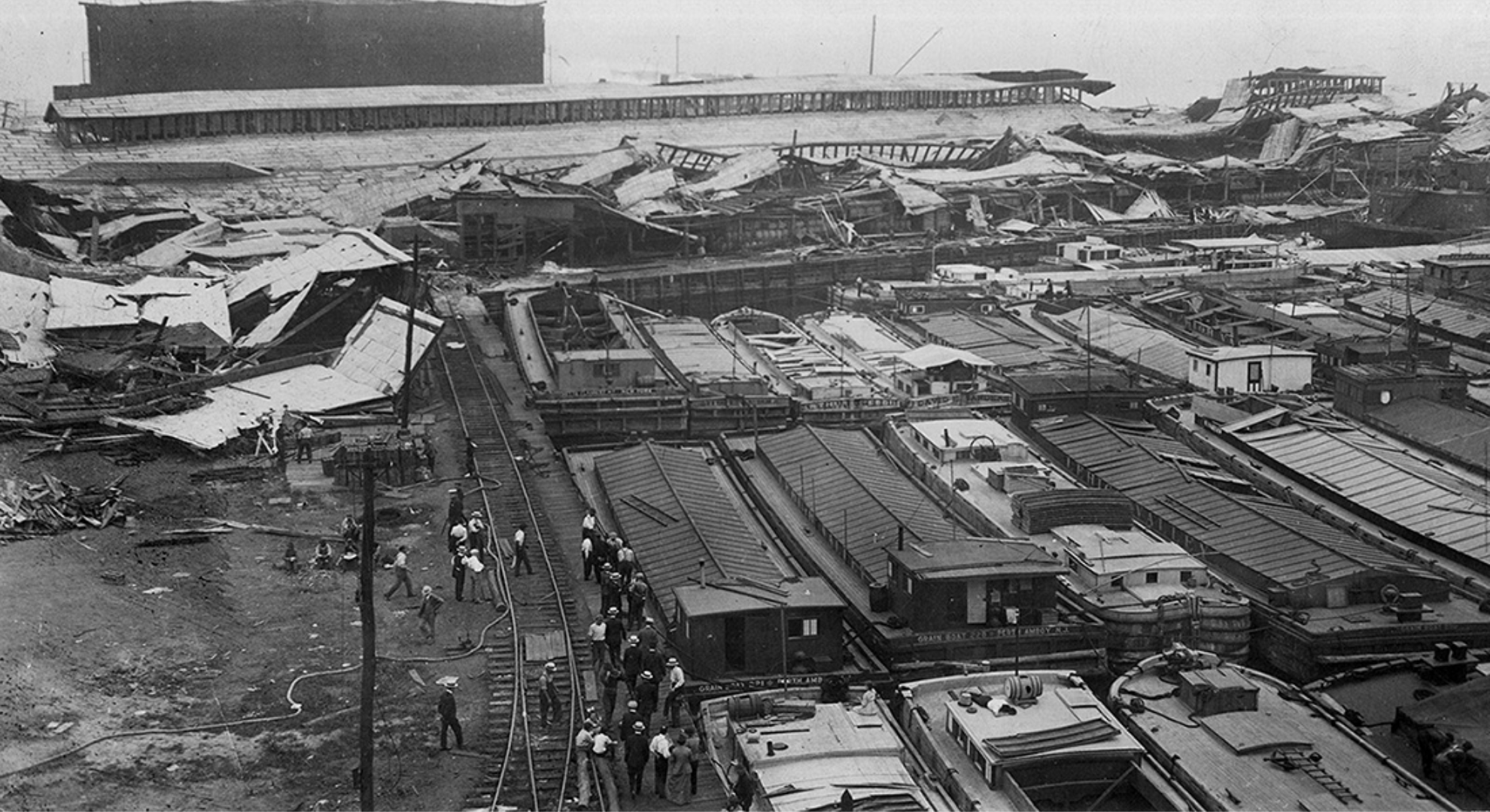 A huge explosion rocked New York in the early morning of 30 July 1916 as thousands of pounds of munitions on Black Tom Island detonated.