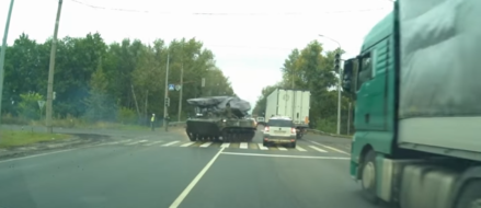 Watch: Russian dashcam shows armored BMD-4 fishtail and punt a civilian SUV in traffic