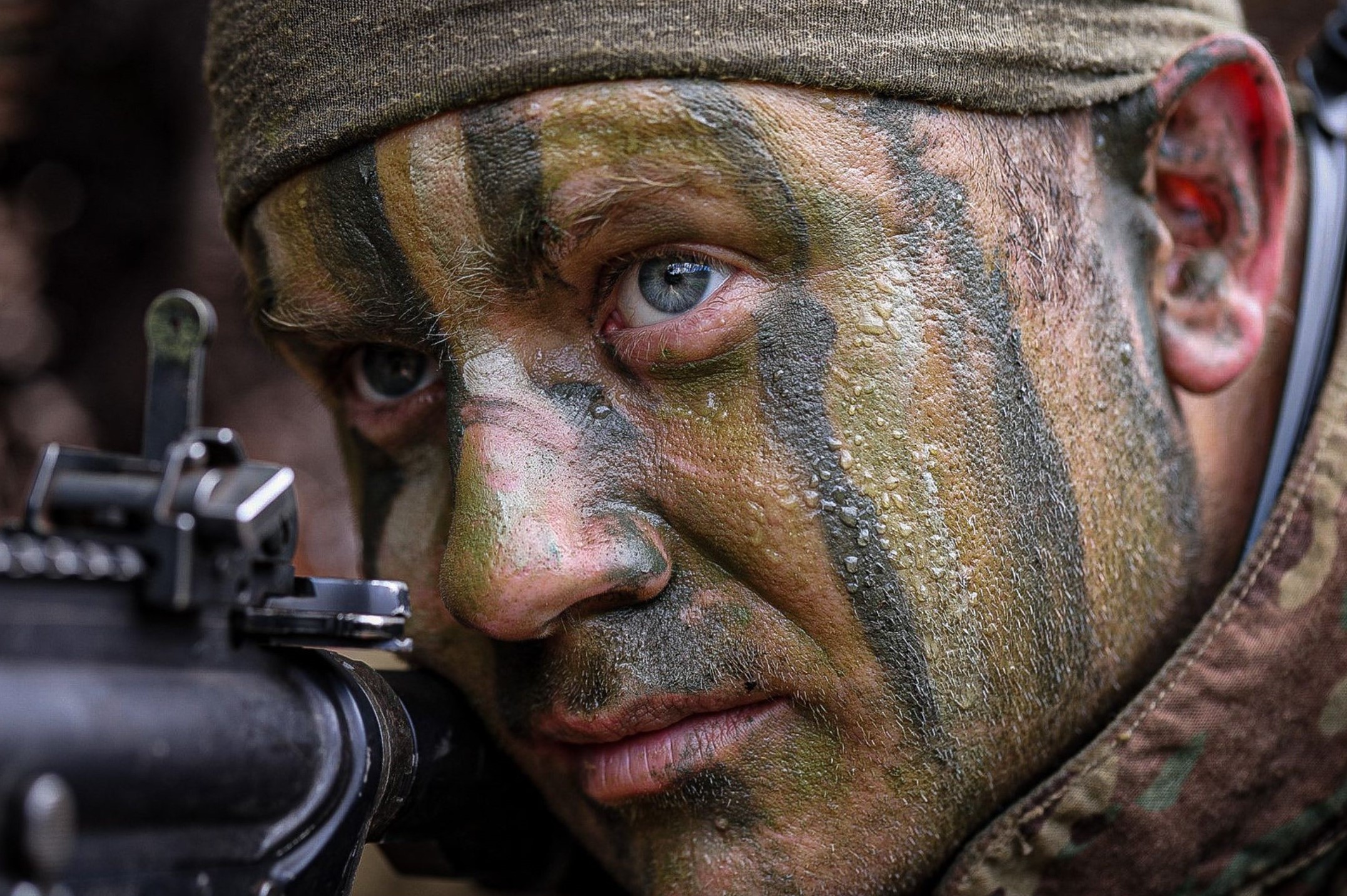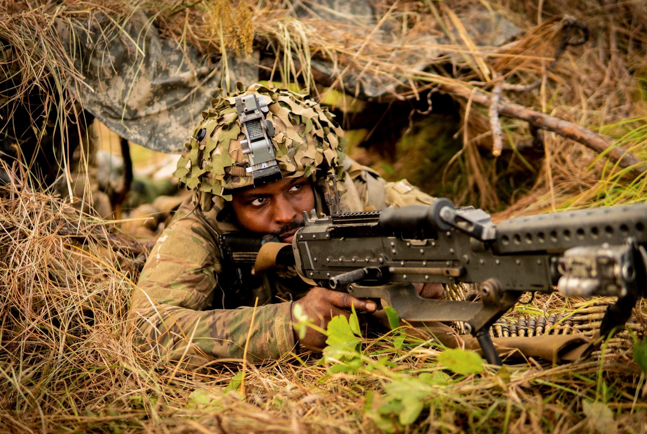 Date: June 7th, 2021 Place: Fort Polk, Lousiana A National Guardsman posts security during training at Fort Polk, Louisiana, on June 7th, 2021. US Army Photo by Spc James Bozeman Training at Fort Polk.