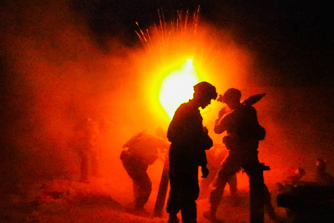 U.S. Soldiers from Headquarters and Headquarters Company, 2nd Battalion, 508th Parachute Infantry Regiment, 2nd Brigade Combat Team, 82nd Airborne Division, fire rounds from an M120 mortar system at Al Asad Air Base, Iraq, July 25, 2020. Mortar training enhances base defense operations and acts as a show of force.